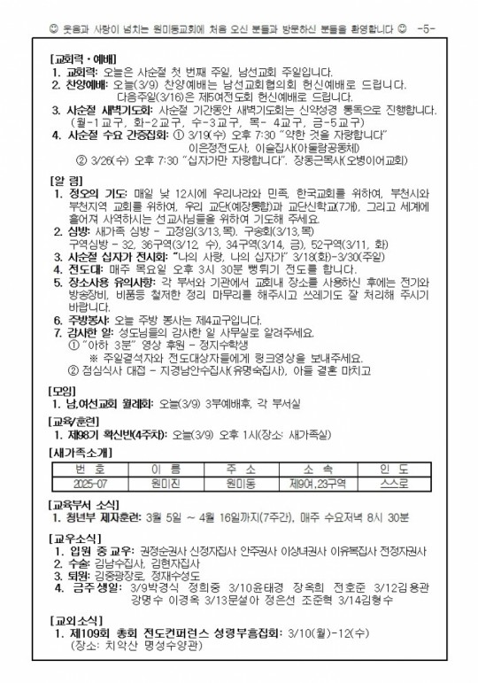 [ÁÖº¸] 2025³â 3¿ù 9ÀÏ(ÁÖÀÏ) ÁÖº¸