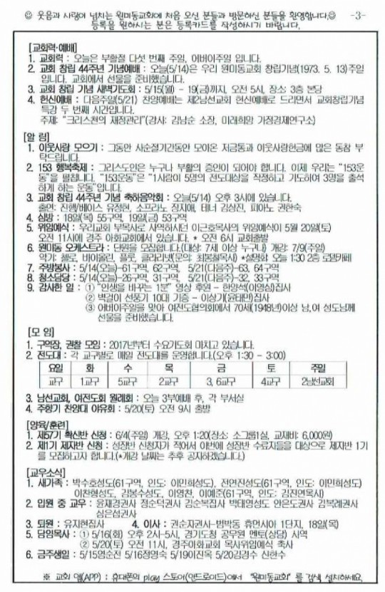 2017³â 5¿ù 14ÀÏ(ÁÖÀÏ) ÁÖº¸