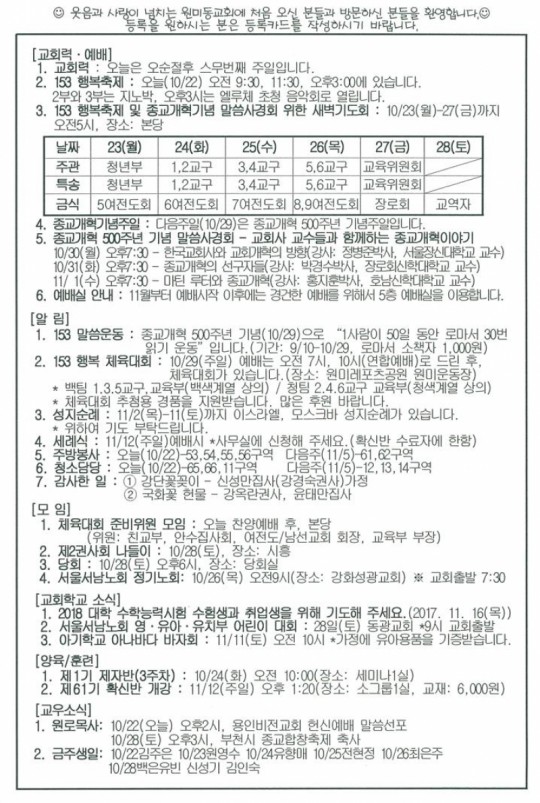 [ÁÖº¸] 2017³â 10¿ù 22ÀÏ(ÁÖÀÏ) ÁÖº¸