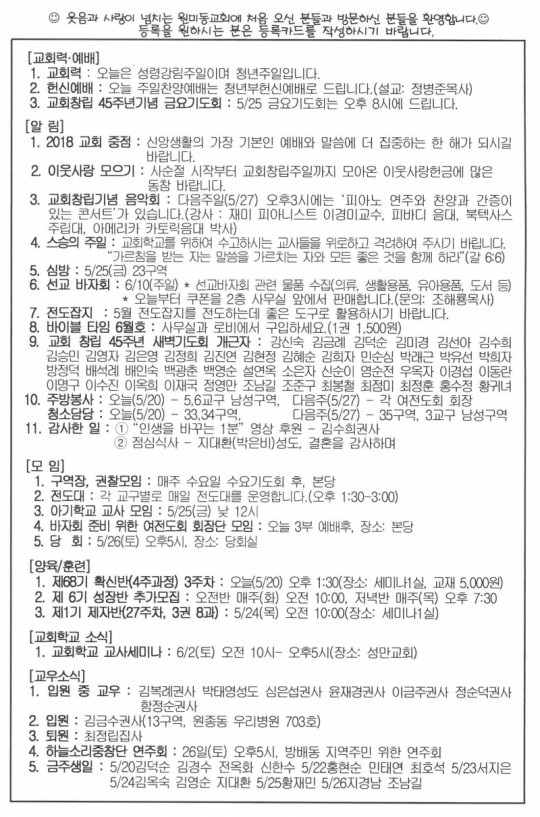 2018³â 5¿ù 20ÀÏ(ÁÖÀÏ) ÁÖº¸