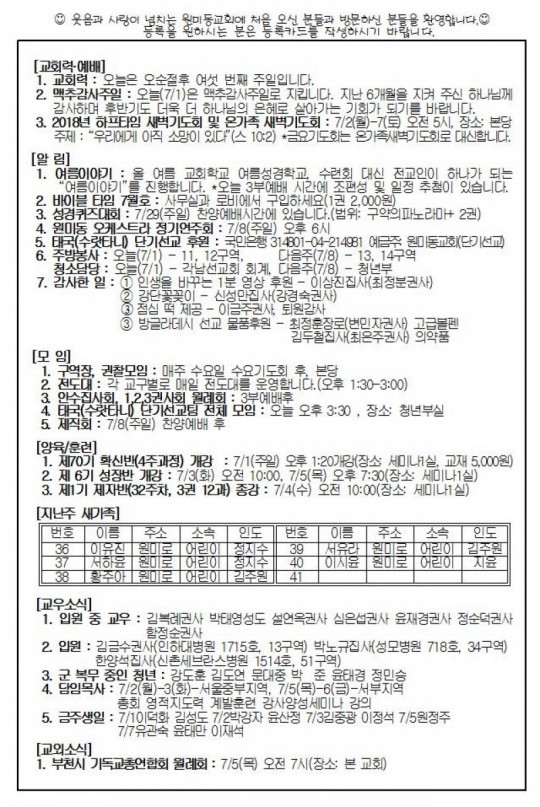 [ÁÖº¸] 2018³â 7¿ù 1ÀÏ(ÁÖÀÏ) ÁÖº¸