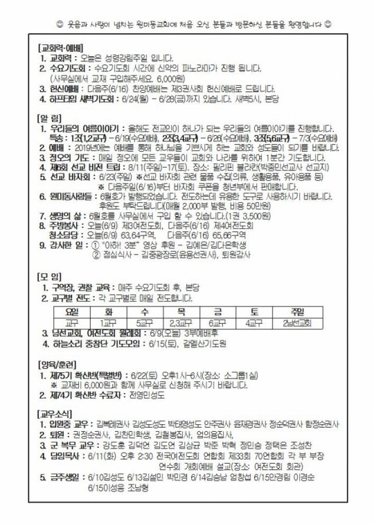 2019³â 6¿ù 9ÀÏ(ÁÖÀÏ) ÁÖº¸