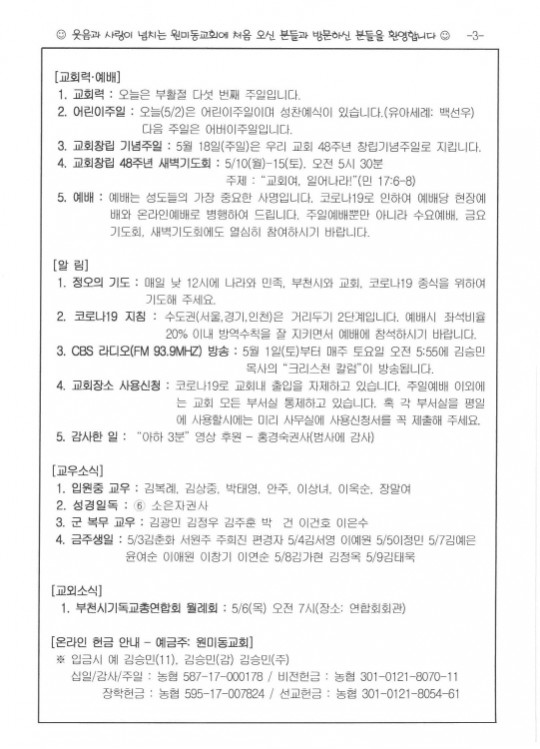 [ÁÖº¸] 2021³â 05¿ù 02ÀÏ(ºÎȰÀý ´Ù¼¸¹øÂ° ÁÖÀÏ)