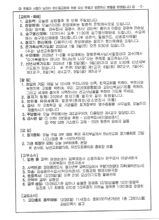 2025³â 12¿ù 28ÀÏ(ÁÖÀÏ) ÁÖº¸