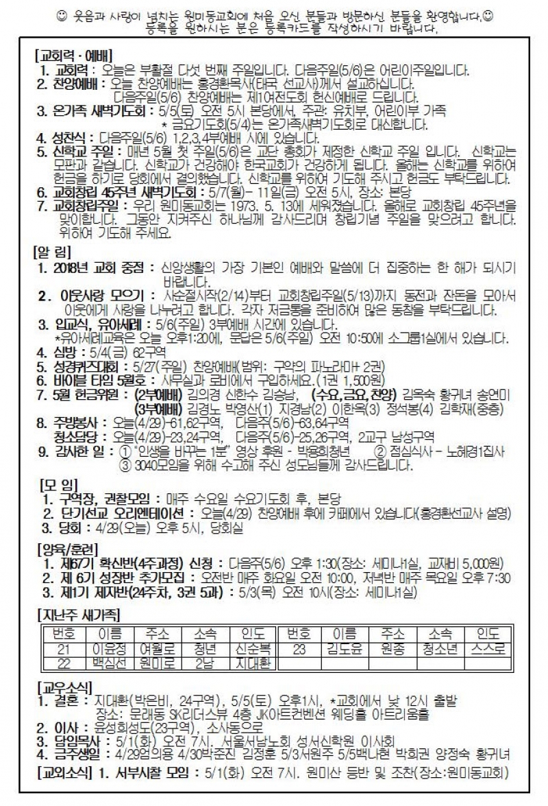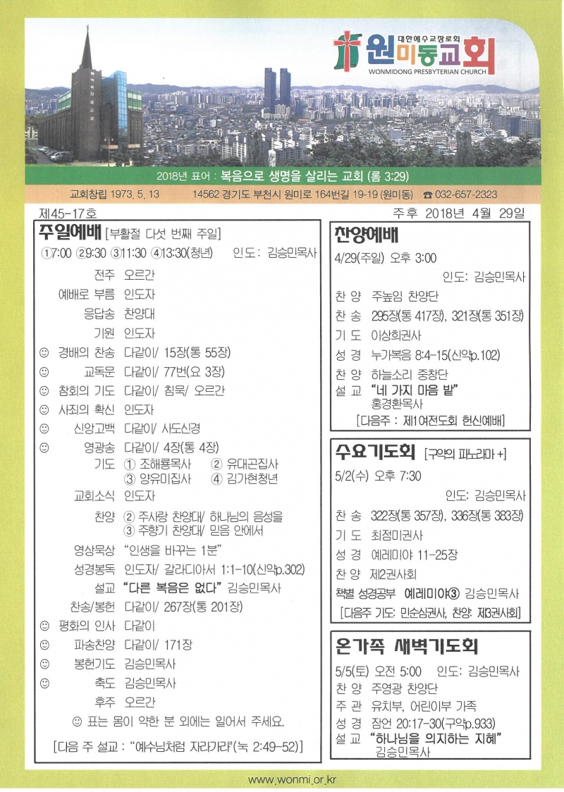 2018³â 4¿ù 29ÀÏ(ÁÖÀÏ) ÁÖº¸