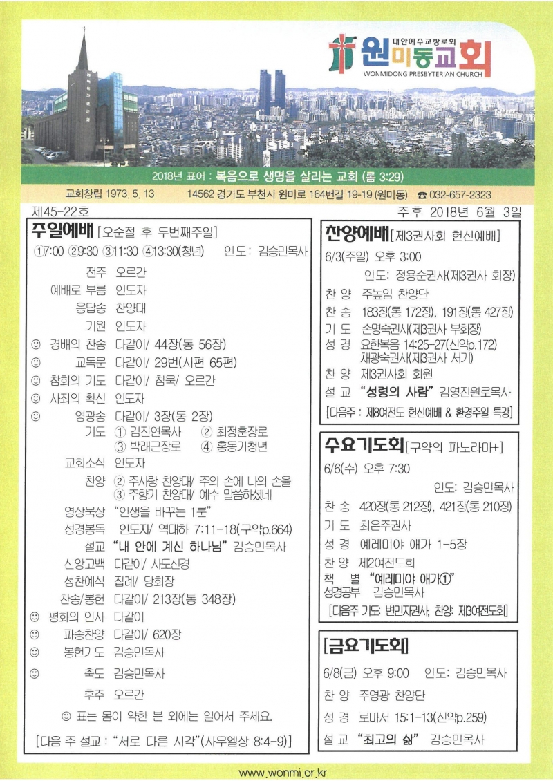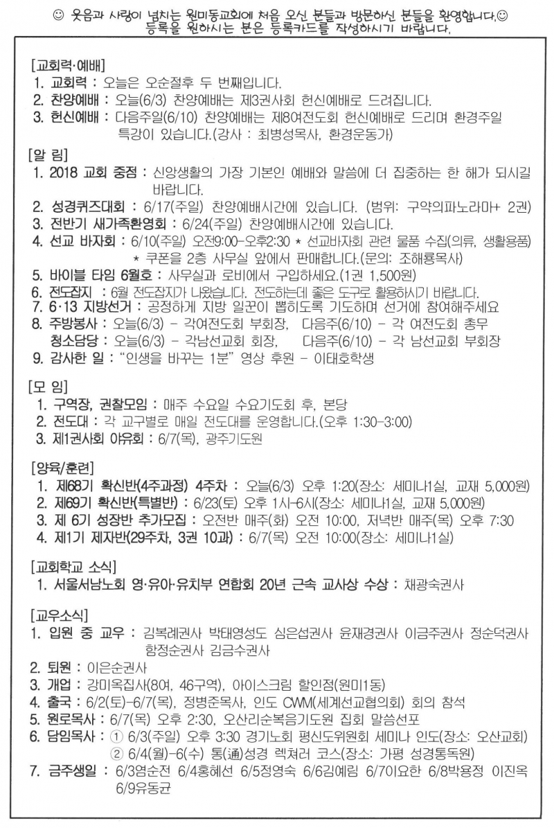 2018³â 6¿ù 3ÀÏ(ÁÖÀÏ) ÁÖº¸