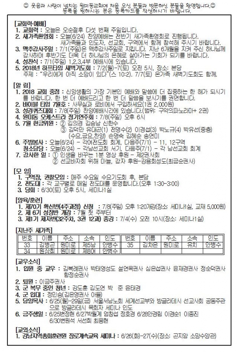 2018³â 6¿ù 24ÀÏ(ÁÖÀÏ) ÁÖº¸