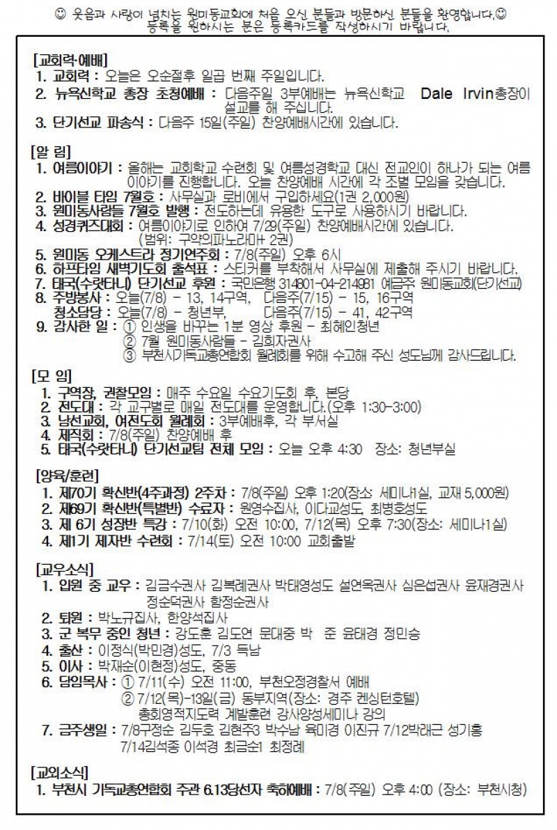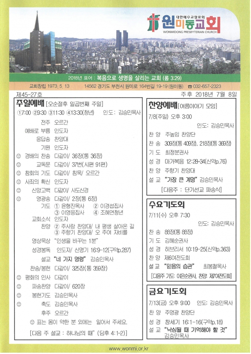 2018³â 7¿ù 8ÀÏ(ÁÖÀÏ) ÁÖº¸