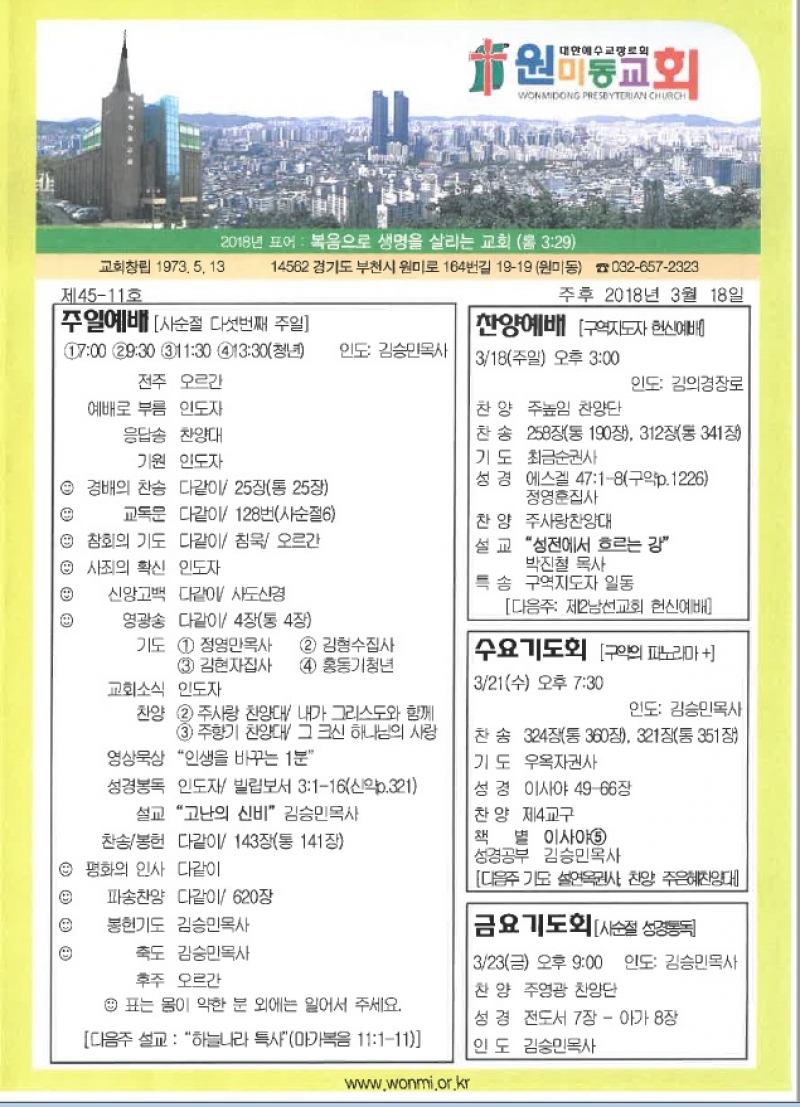 2018³â 3¿ù 18ÀÏ(ÁÖÀÏ) ÁÖº¸