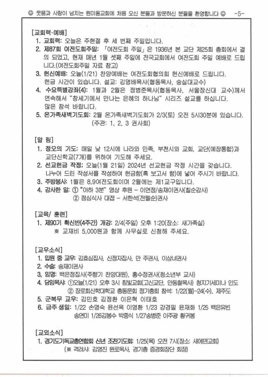 [ÁÖº¸] 2024³â 1¿ù 21ÀÏ(ÁÖÀÏ) ÁÖº¸