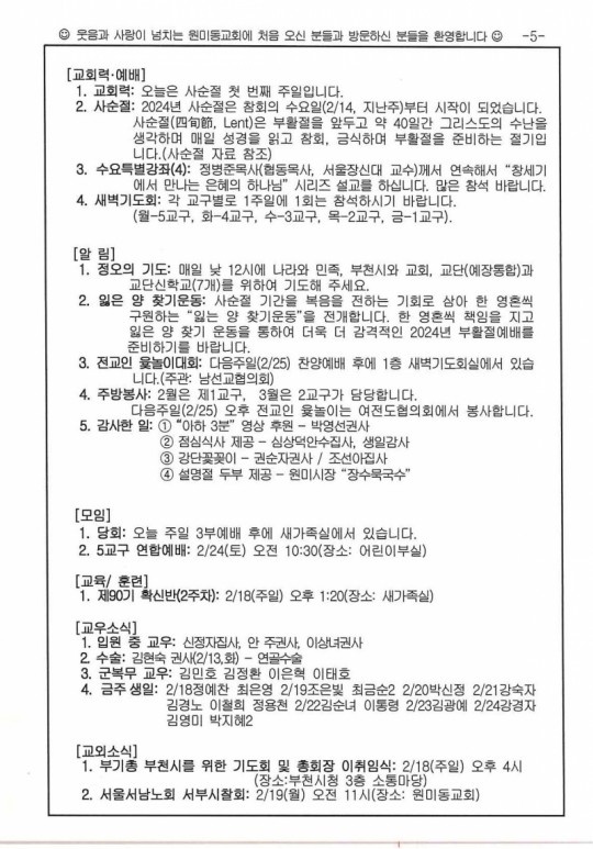 [ÁÖº¸] 2024³â 02¿ù 18ÀÏ(ÁÖÀÏ) ÁÖº¸