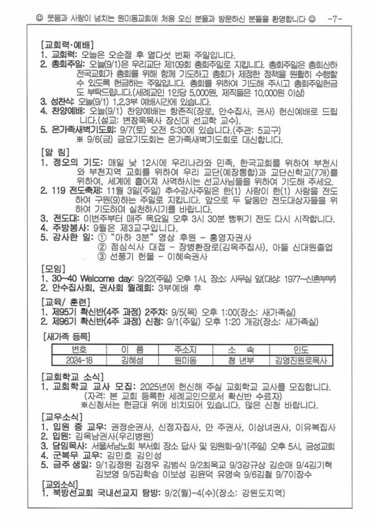 [ÁÖº¸] 2024³â 9¿ù 1ÀÏ(ÁÖÀÏ) ÁÖº¸