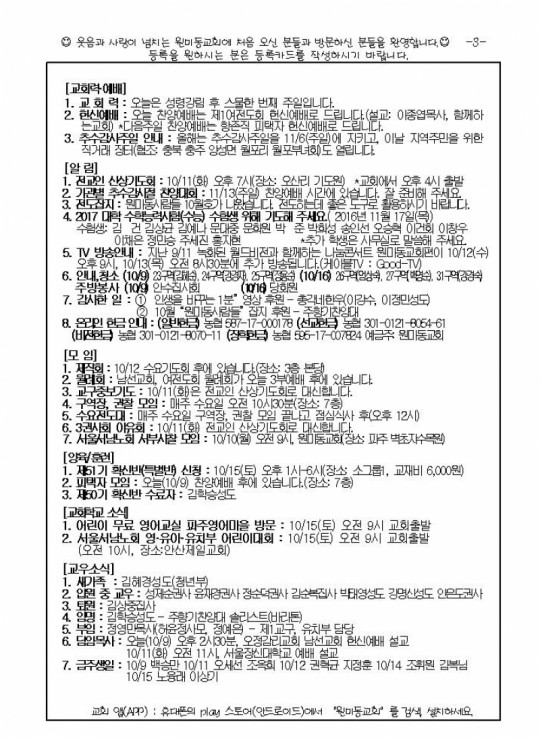 [ÁÖº¸] 2016³â 10¿ù 9ÀÏ(ÁÖÀÏ) ÁÖº¸