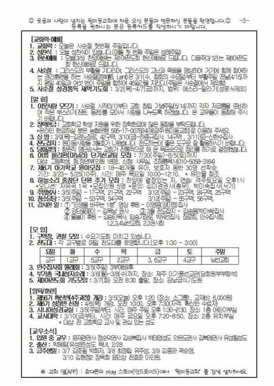 2017³â 3¿ù 5ÀÏ(ÁÖÀÏ) ÁÖº¸