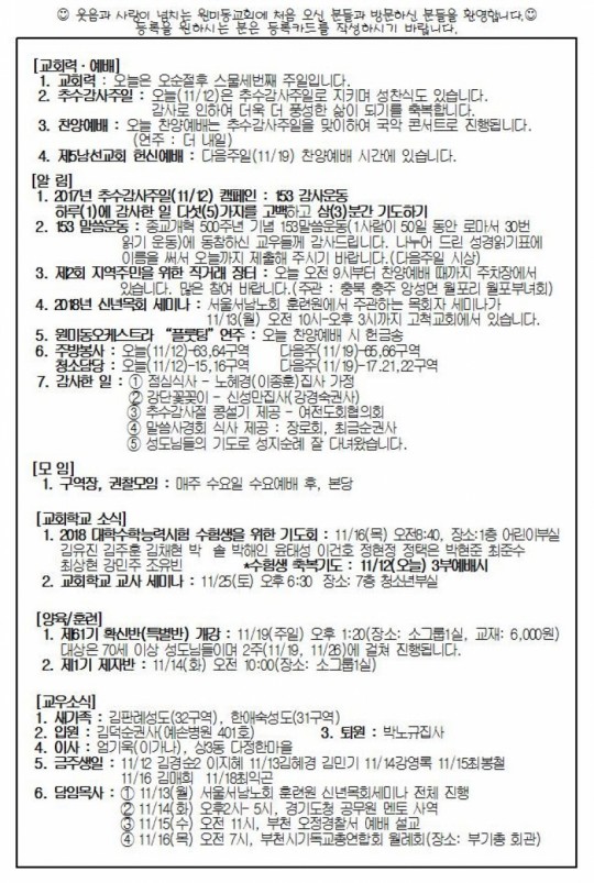 [ÁÖº¸] 2017³â 11¿ù 12ÀÏ(ÁÖÀÏ) ÁÖº¸