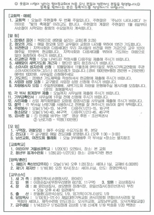 [ÁÖº¸] 2018³â 1¿ù 14ÀÏ(ÁÖÀÏ) ÁÖº¸