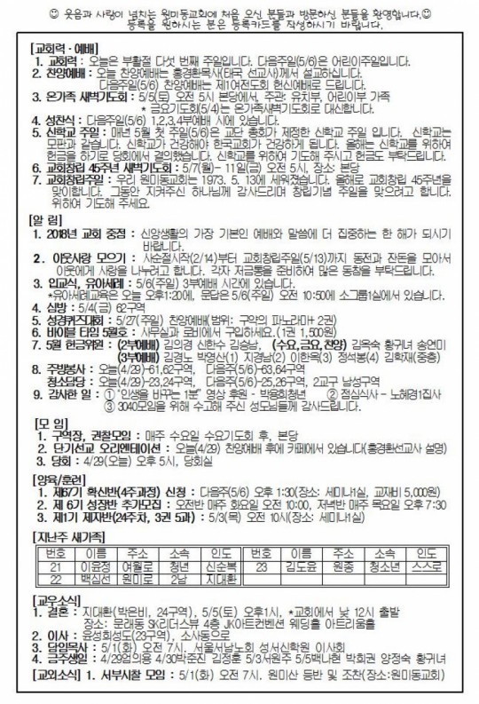[ÁÖº¸] 2018³â 4¿ù 29ÀÏ(ÁÖÀÏ) ÁÖº¸