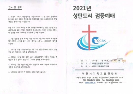 [¿ÜºÎÇà»ç] ºÎõ½Ã ±âµ¶±³ÃÑ¿¬ÇÕȸ ÁÖ°ü ¼ºÅºÆ®¸® Á¡µî½Ä